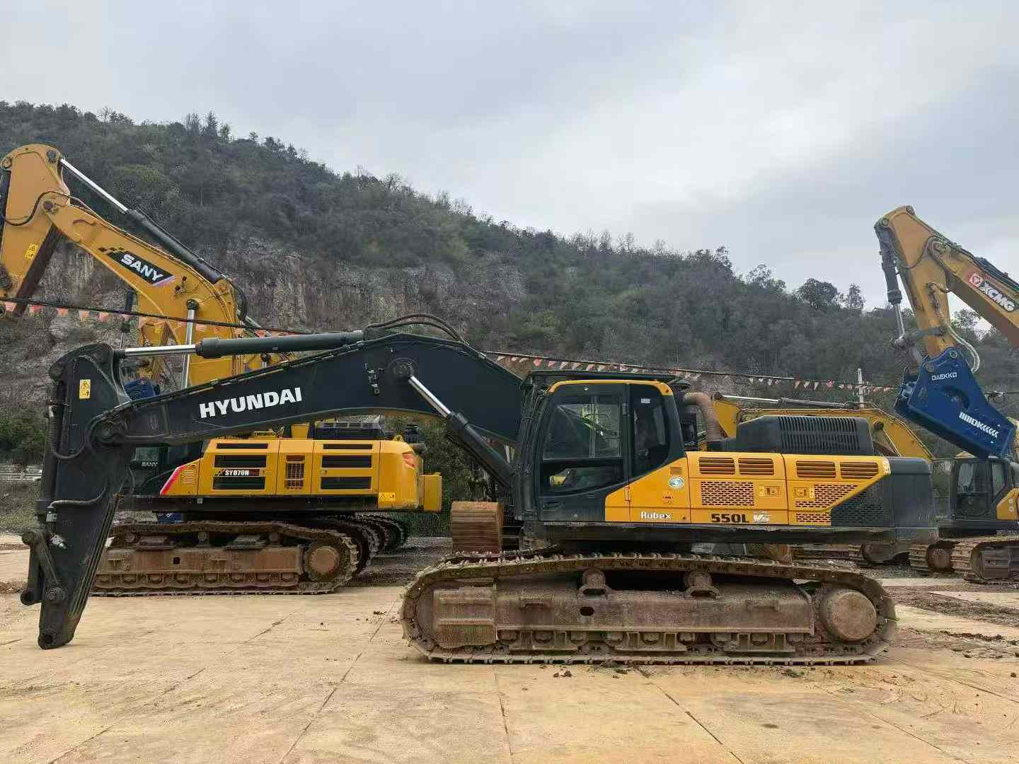 Engineered for maximum productivity, this 2021 Hyundai HX550L crawler excavator delivers 55 tons of precision-controlled digging power. At its core, the Cummins X12 engine generates 280 kW at 2,100 rpm with 1,966 N·m of peak torque, providing exceptional fuel efficiency and reliability for extended operation cycles. The advanced hydraulic system—560L capacity—drives impressive 271.4 kN bucket digging force and 246.5 kN stick force, enabling efficient material handling in demanding applications.