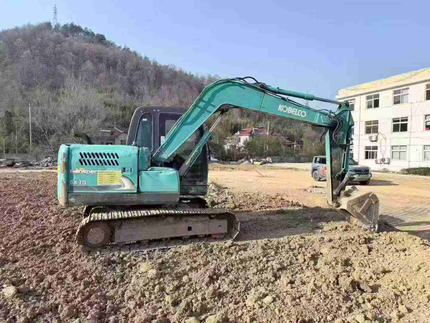 Currently located in Lishui, Zhejiang, this SK75 features a water-cooled 4-cylinder engine with 2.179L displacement and advanced hydraulic systems including double variable displacement axial piston pumps. With a maximum digging depth of 4160mm and reach of 6460mm, it handles excavation tasks with precision while maintaining a compact footprint—just 1760mm minimum turning radius.
