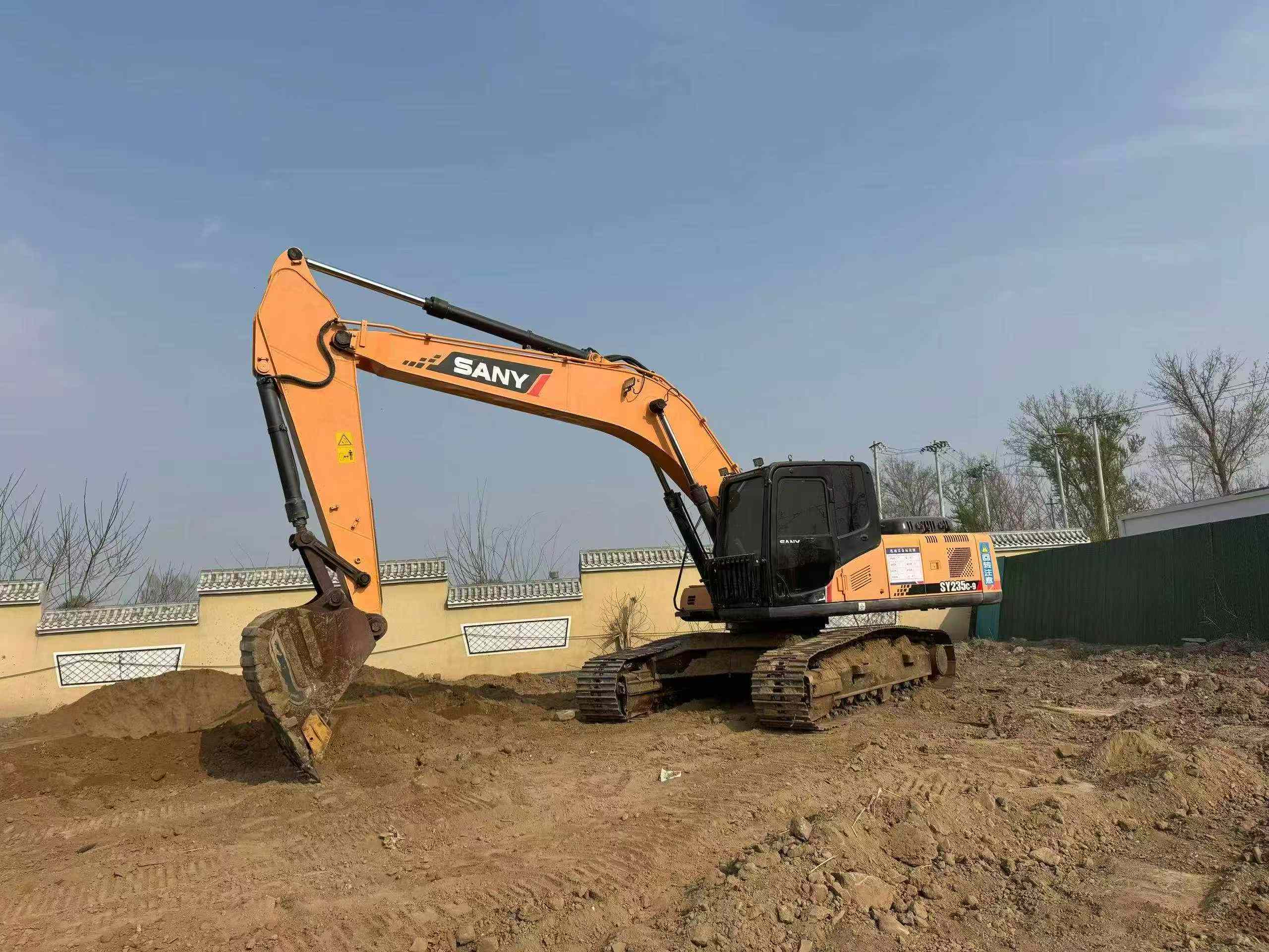 Featuring a robust 125 kW/2100 rpm rated power, the Sany SY235C-8 excavator from 2016 is equipped with traditional power and water-cooling for reliable performance. With a working weight of 22,900 kg and a bucket capacity of 1 m³, this backhoe model is designed for heavy-duty tasks. The main pump delivers a maximum flow of 2 x 265 l/min, ensuring efficient hydraulic operation. The main overflow set pressure stands at 34.3 Mpa, while the traveling and rotary hydraulic circuits operate at 34.3 Mpa and 25.5 Mpa, respectively. This model offers a climbing ability of 70% or 35°, and a travel speed of 3.2/5.5 km/h, making it versatile for various terrains. Engineered in Kunshan, Jiangsu Province, China, the SY235C-8 boasts a ground specific pressure of 47.6 Kpa, enhancing stability and maneuverability. Its maximum digging depth of 6,920 mm and maximum excavation height of 9,380 mm highlight its capability in deep and high-reach operations.