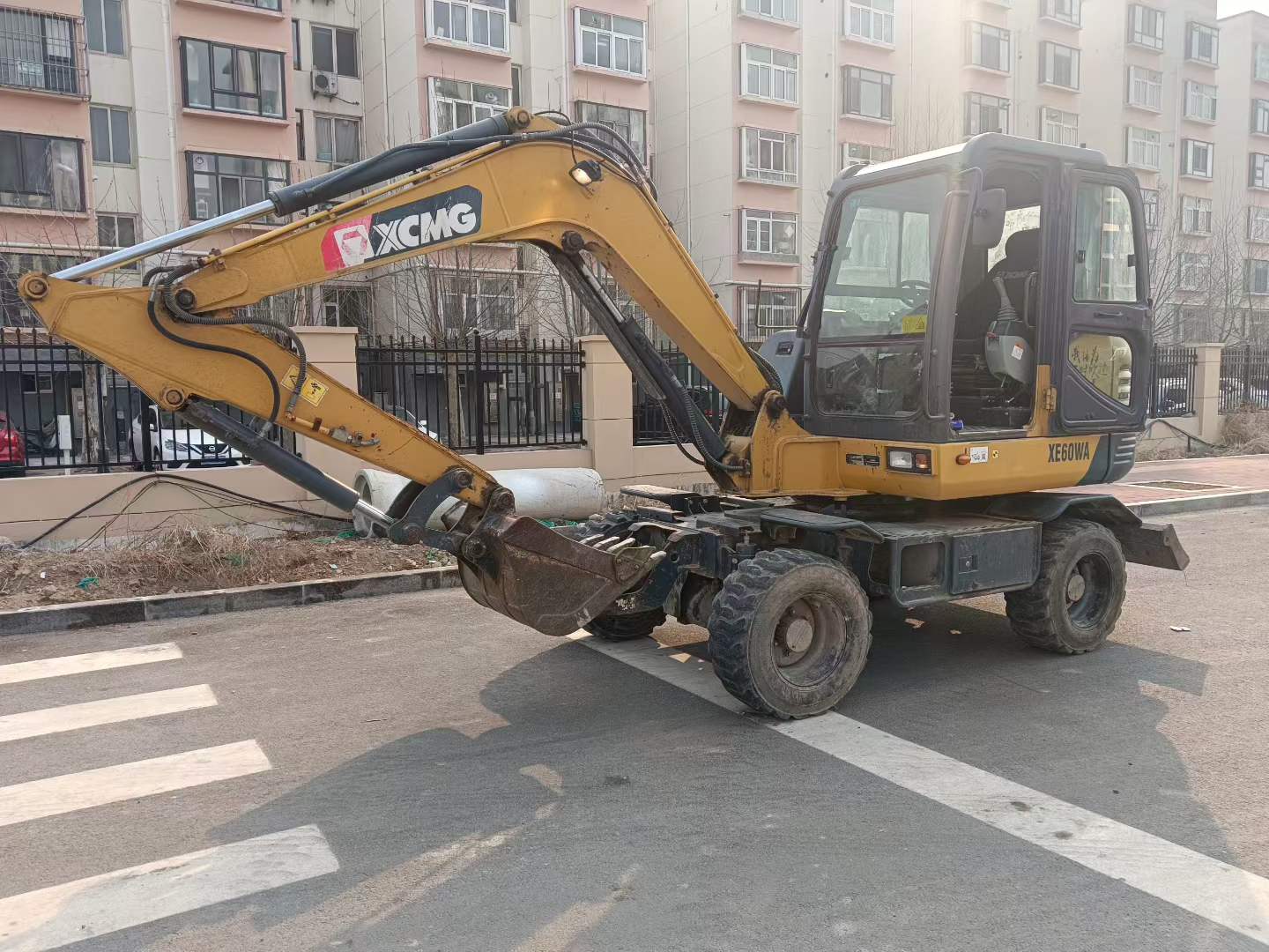 Built for precision work in confined spaces, this 2016 XCMG XE60 mini excavator delivers reliable performance with exceptional operator control. Powered by a Yanmar 4TNV94L engine producing 39.8 kW at 2200 rpm, this 6-ton machine combines responsive hydraulics with stable operation across demanding job sites. The Rexroth main pump system provides dual 60.5 l/min flow rates, ensuring smooth boom and arm movements while maintaining precise bucket control.